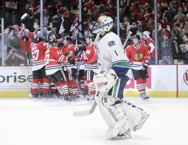 The 22-year old Smith scored the biggest goal of his career and sent the UC into a frenzy. The winning play was set up by Marian Hossa imposing his will along the boards to corral the puck through the Canucks’ defense and into the slot before passing to Hjalmarsson. Hammer did what every hockey player is taught to do, get the puck to the net and hope for a juicy rebound, and that’s exactly what happened.