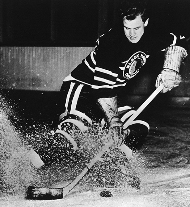 Mosienko played all 14 seasons of his NHL career in Chicago. His Hall of Fame career included 258 goals, and he was a five time 20-goal scorer. As the video stated, Mosienko played on the famous “Pony Line” with the Bentley brothers. Mosienko won the Lady Byng Trophy in 1945 as the most gentlemanly player in the league.