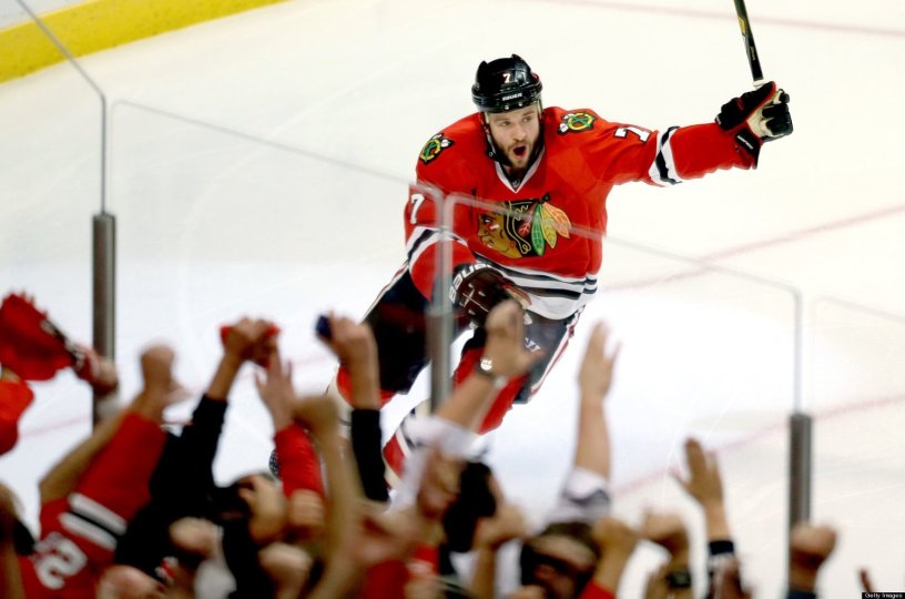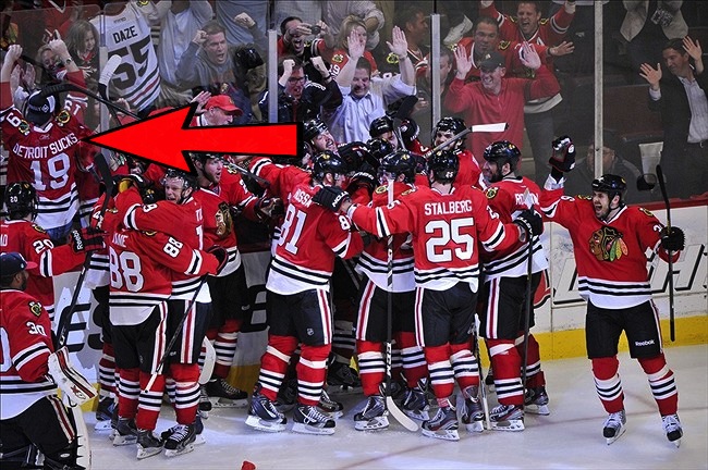 In Game 7, the Blackhawks took a 1-0 lead on a nice goal by Patrick Sharp. That lead would stand until early in the third period when Henrik Zetterberg tied the game 1-1. The Hawks and Wings went back and forth all the way down to the waning minutes of regulation when things got… crazy.